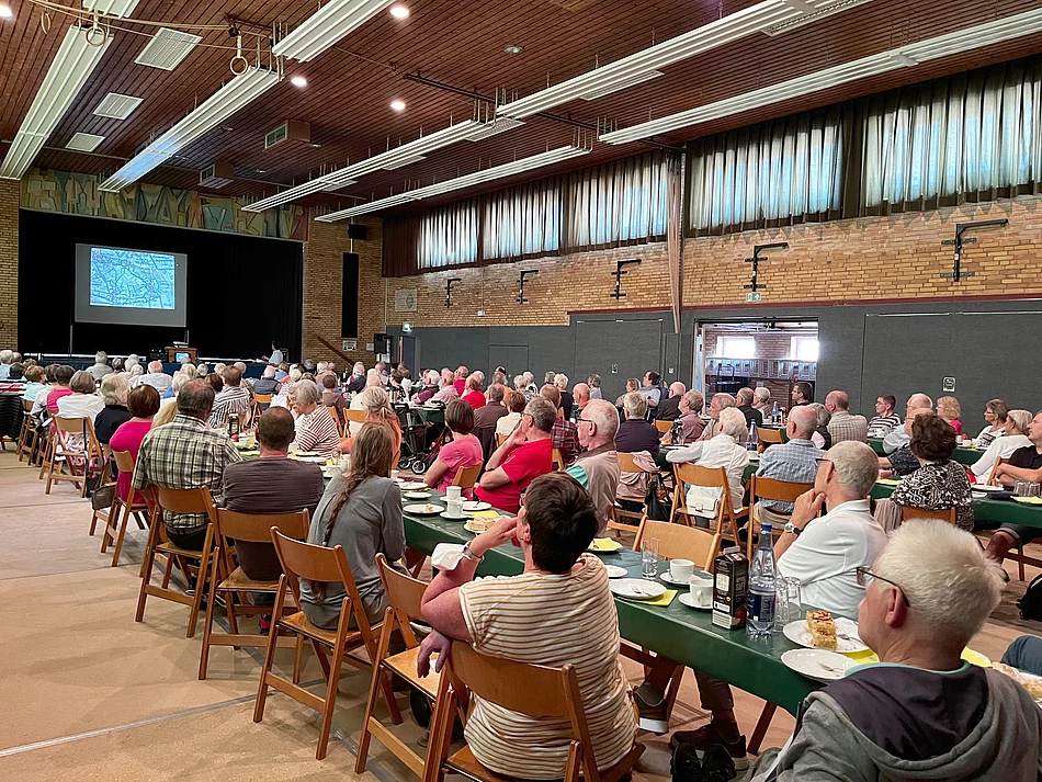 Der Vortrag vom Leiter des Lägerdorfer Heimatmuseums, Uwe Erickson, über den Breitenburger Schifffahrtskanal erwies sich als absoluter Veranstaltungshit, denn der Einladung folgten 130 Personen. Bei Kaffee und Kuchen sowie Softgetränken wurden die Zuschauer durch die Historie des Breitenburger Schifffahrtskanals, dessen Spatenstich auf das Jahr 1872 zurückgeht und bereits seit 150 Jahren besteht, geführt.